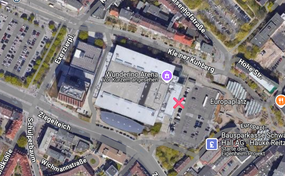 Treffpunkt ist vor der Halle auf der Seite zum Europaplatz.